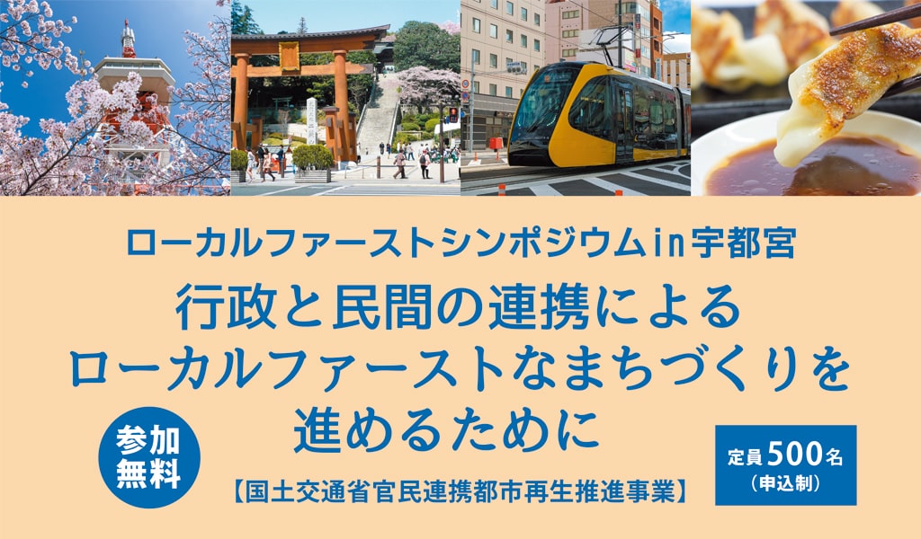 官民連携により地域一丸となってまちづくりを進めている先進地域であり、LRTの開業等により魅力度向上中の宇都宮市においてシンポジウムを開催し、宇都宮市の取組み、国内3地区で実施するデザインキャンプ等の報告と合わせ、行政と民間が連携したローカルファーストなまちづくりの意義とその進め方を全国に発信します。